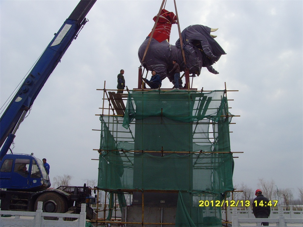 2013年6月,大型鑄銅鎏金雕塑——“金雞雕塑”及漢白玉浮雕落成。安裝于青島市萊西市上海西路青島九聯(lián)集團股份有限公司總部。該雕塑工程從2012年5月開始施工,歷時13個月。