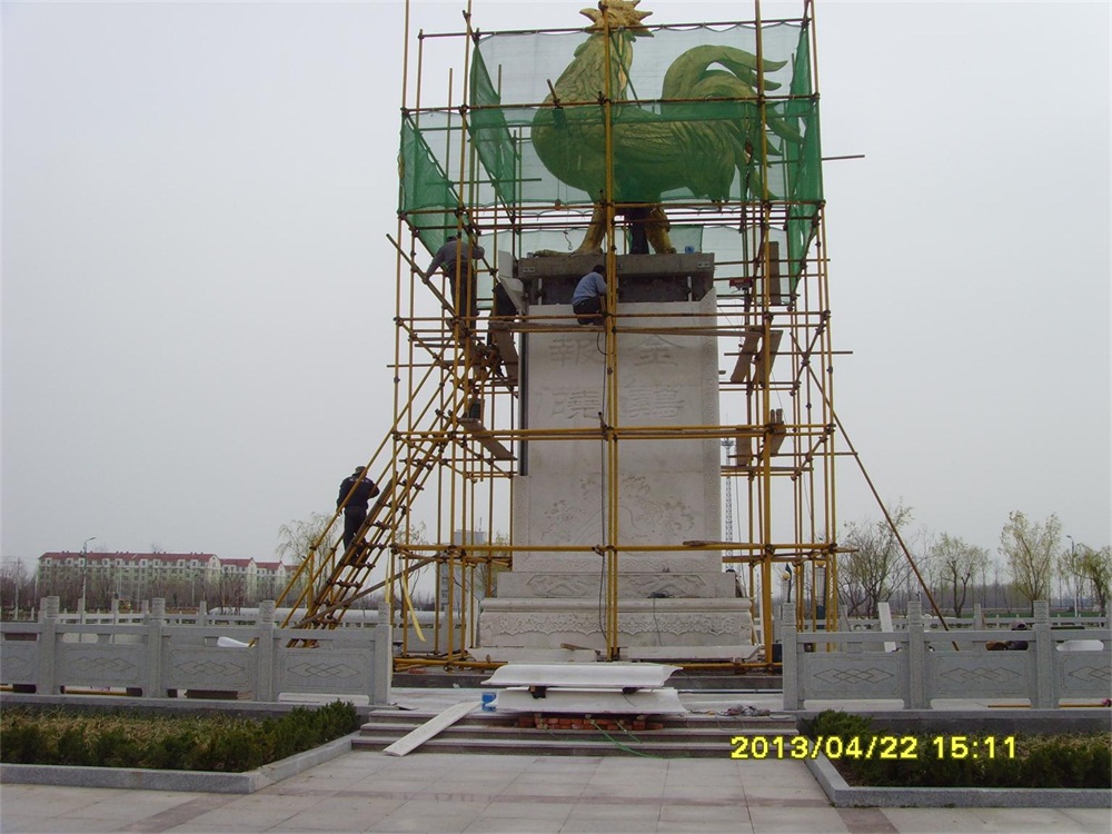 項目案例->金雞雕塑(鑄銅鎏金/漢白玉浮雕底座)