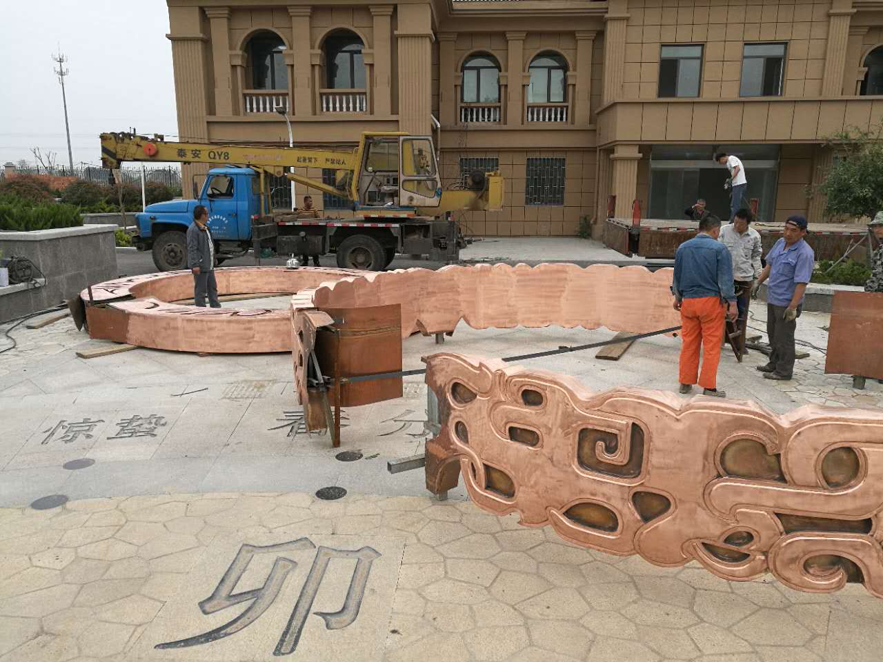 雕塑材質(zhì):紫銅板,手工鍛造。