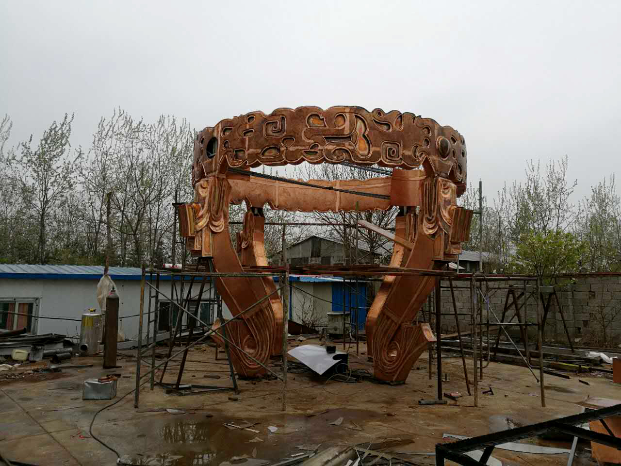 簡要技術要求:鍛銅渾天儀景觀小品設計、制作與安裝,采用厚度1.5-2.0mm紫銅鍛造。