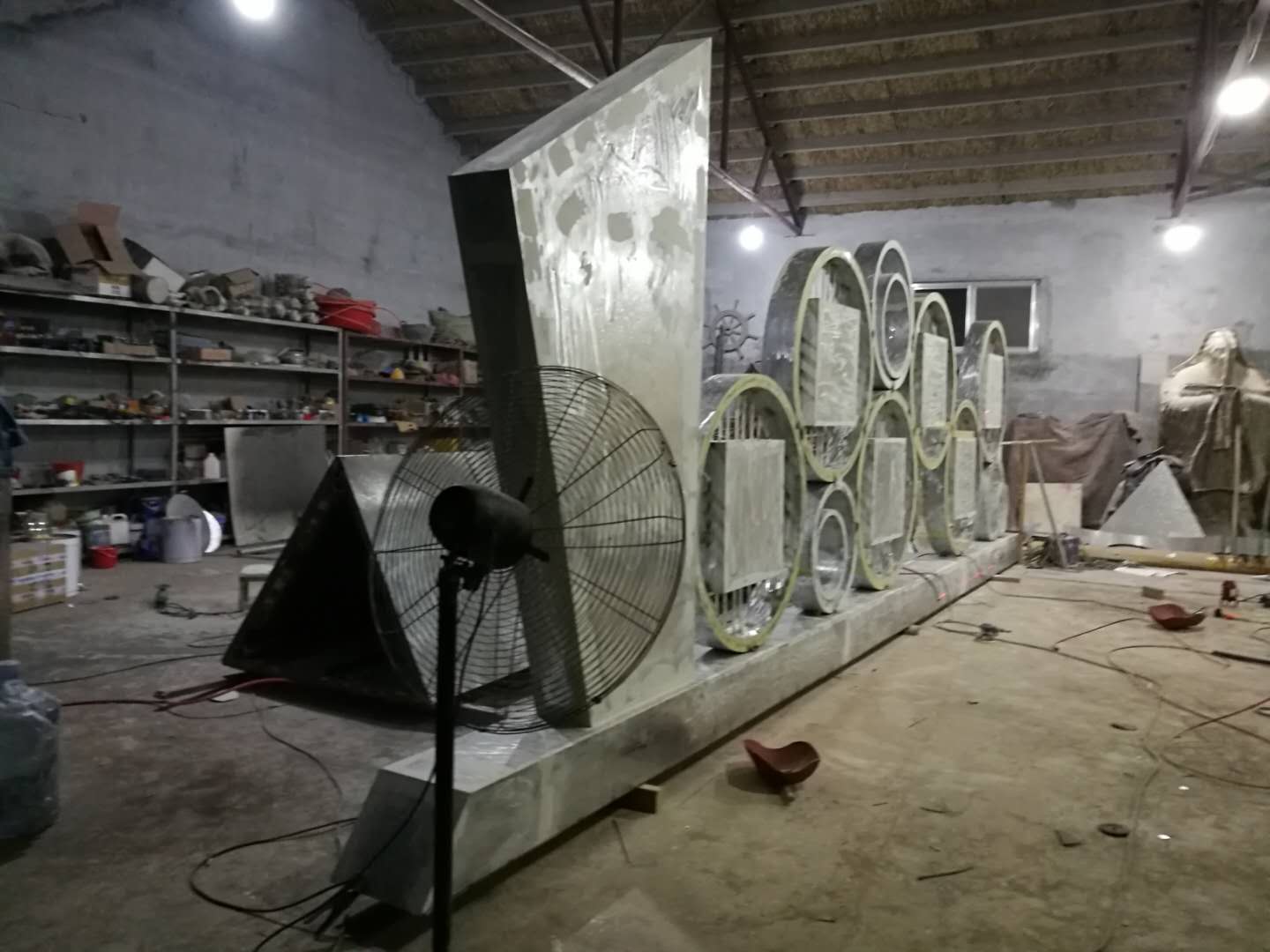 1、材質(zhì):雕塑內(nèi)置金屬骨架(并做防腐),前后面板采用2mm厚鍍鋅板,側板采用1.5mm厚鍍鋅板。表層氟碳漆噴涂,文字采用亞克力發(fā)光字。