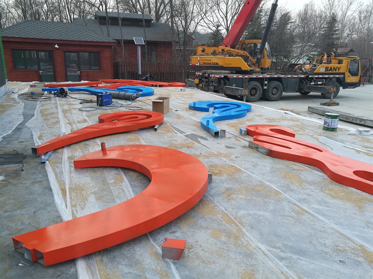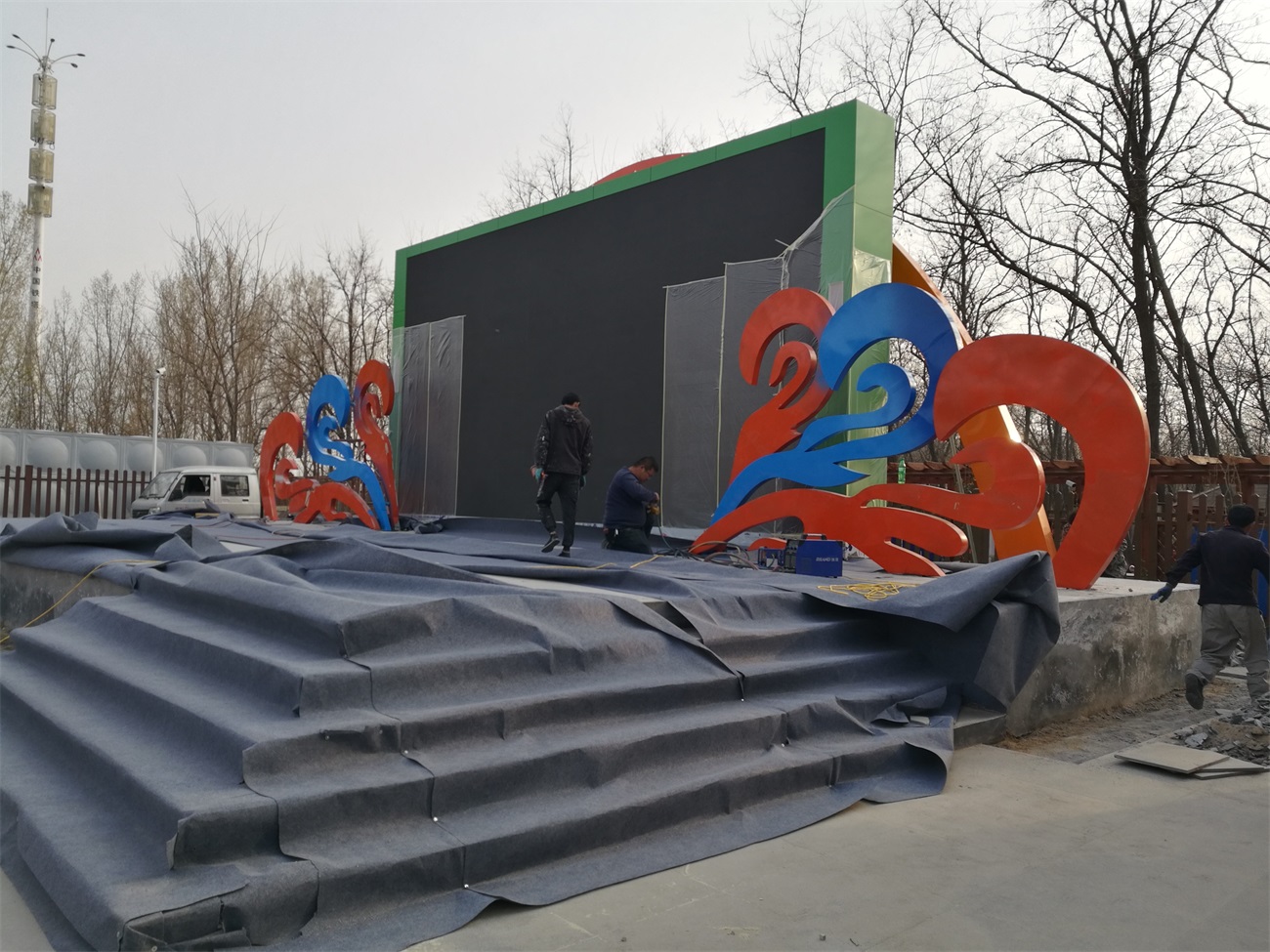 打漁張景區(qū)游客中心大舞臺不銹鋼造型雕塑