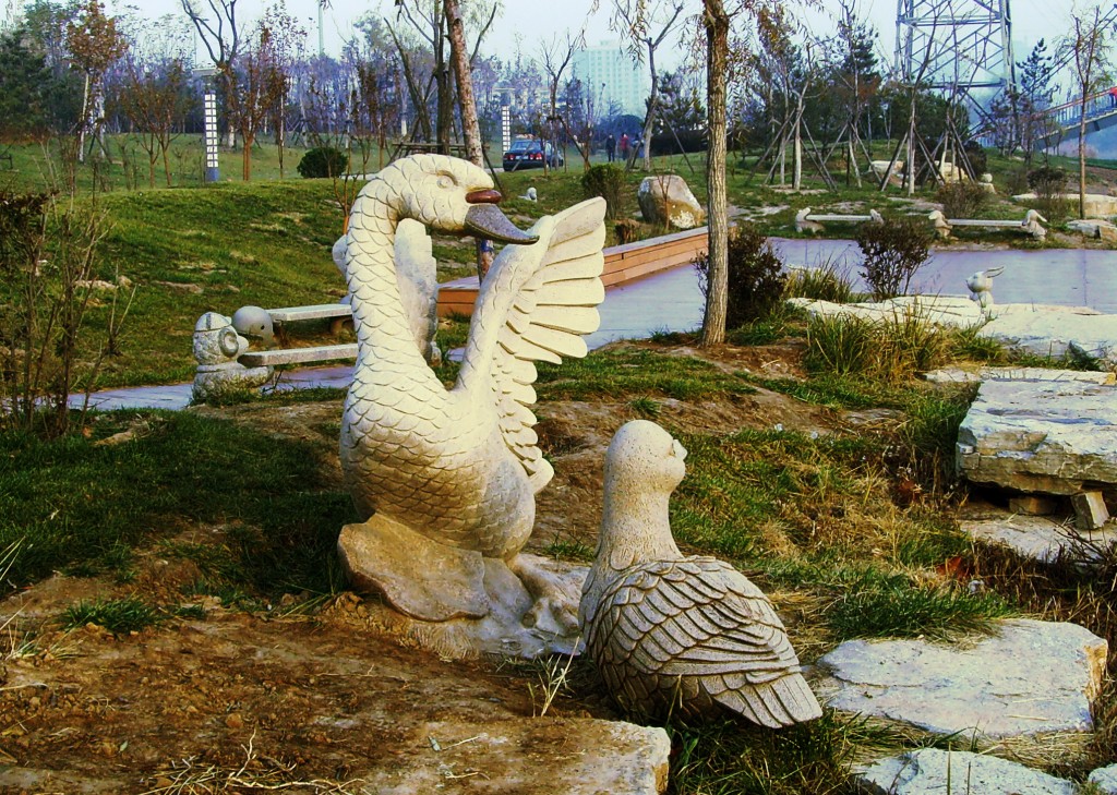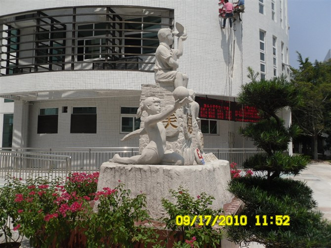 石材雕塑展示。石雕,指用各種可雕、可刻的石頭,創(chuàng)造出具有一定空間的可視、可觸的藝術(shù)形象,借以反映社會(huì)生活、表達(dá)藝術(shù)家的審美感受、審美情感、審美理想的藝術(shù)。常用的石材有花崗石、大理石、青石、砂石等。石材質(zhì)量堅(jiān)硬耐風(fēng)化,是大型紀(jì)念性雕塑的主要材料。