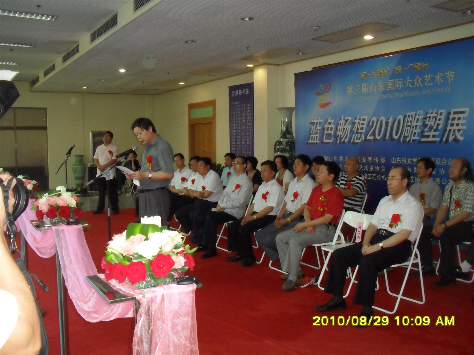 藍(lán)色暢想2010雕塑,2010年8月29日,由中共山東省委宣傳部、山東省文學(xué)藝術(shù)界聯(lián)合會(huì)主辦,山東省雕塑藝術(shù)家協(xié)會(huì)、青島雕塑家協(xié)會(huì)承辦的第三屆山東國際大眾藝術(shù)節(jié)--藍(lán)色暢想2010雕塑展在山東省圖書館隆重開幕。  "藍(lán)色暢想2010雕塑展"吸引了省內(nèi)外大批中青年雕塑家的參與,展覽共收到101位雕塑藝術(shù)家的126件入圍作品。其中省內(nèi)中青年雕塑藝術(shù)家占絕大多數(shù),圍繞"藍(lán)色"主題,堅(jiān)持創(chuàng)造、創(chuàng)新理念,創(chuàng)作了大批優(yōu)秀的雕塑藝術(shù)作品,語言生動(dòng),內(nèi)容多樣,借助不同材質(zhì)和多元化的藝術(shù)風(fēng)格,對(duì)藍(lán)色精神進(jìn)行了深入的闡釋。李友生的《海風(fēng)倩影》、王未的《藍(lán)色暢想》、譚信國的《蘋果系列》等作品,均對(duì)雕塑藝術(shù)內(nèi)涵進(jìn)行了深入的探索。